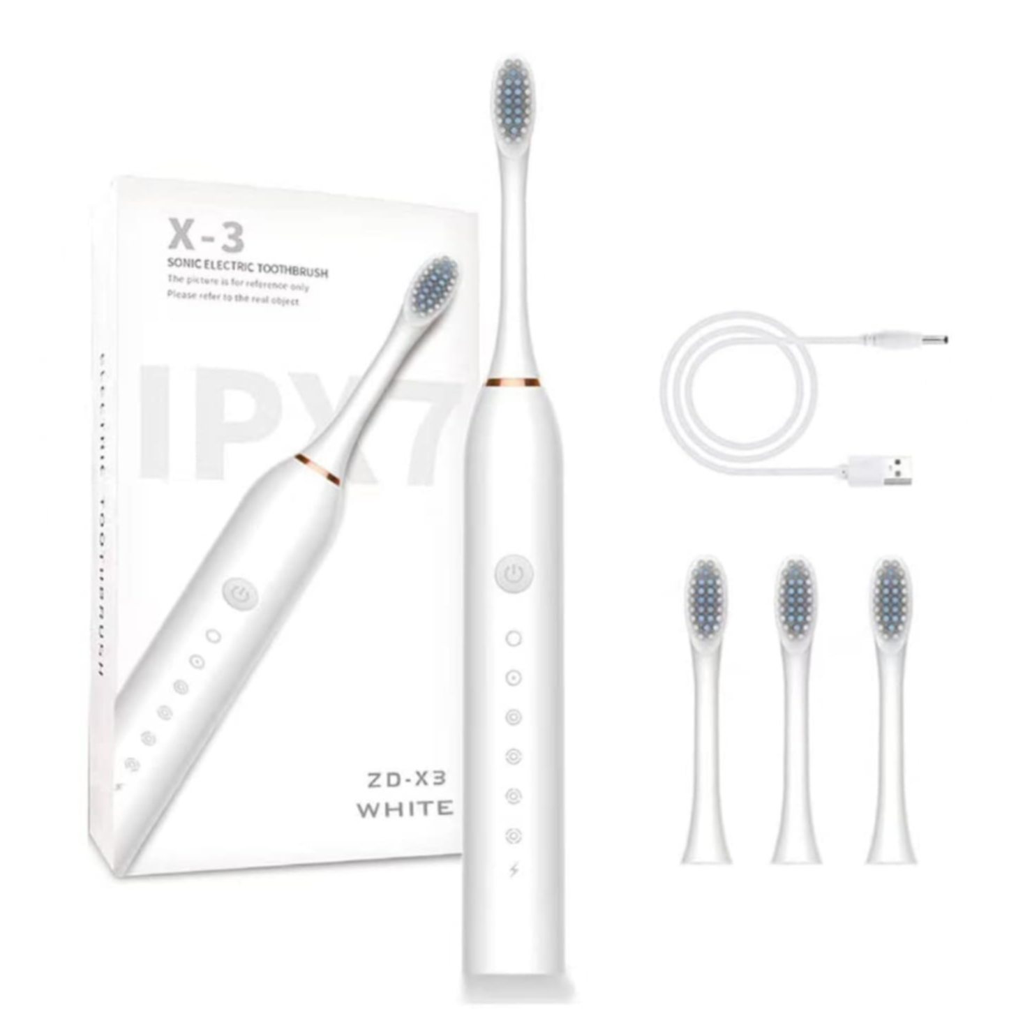 The X3 Sonic Electric Toothbrush in Black is a high-performance oral care tool designed for effective and thorough teeth cleaning. Equipped with sonic technology, it provides powerful and gentle vibrations for efficient plaque removal and gum care. The toothbrush typically features multiple brushing modes, a timer, and replaceable brush heads. The sleek black color adds a modern and stylish touch to your oral care routine.